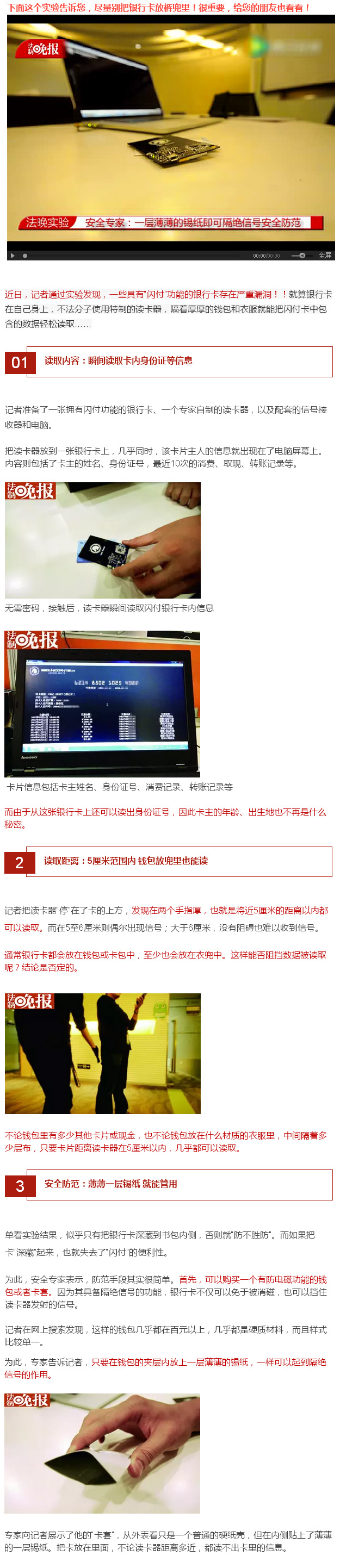 卡套制作所應(yīng)用的軟體電磁屏蔽材料,是國家863公關(guān)項(xiàng)目之一,獲得了5項(xiàng)國家專利。經(jīng)中國航天工業(yè)部203所、中國上海測試中心測試,屏蔽功能>65dB@10MHz;>85Db@100MHz,電磁波阻擋率為99.9999998%,達(dá)到國際水平。