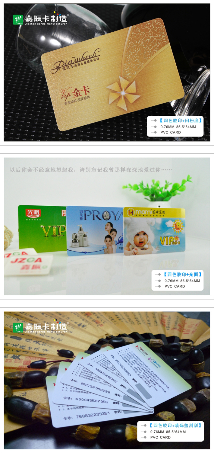 1.卡厚(從不偷工減料) 2.卡白(用好的白料做) 3.高清(德國海德堡全新電腦酒精四色機印刷,相對二手四色水路機,網點更清晰) 4.價低(當同行還在使用手工或半自動化機器制卡時,嘉卡制卡廠已通過引進高速自動化設備,進入標準化規(guī)模制卡,效率高價格相對更低)
