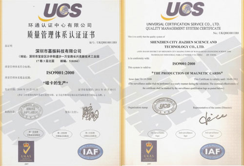 嚴格管理 工廠實行標準生產法進行會員卡等各種卡的生產管理,產品質量通過國際ISO9001:2000質量體系認證,嘉卡制卡超大產能+專業(yè)精神+誠信待客使嘉卡制卡成為了國內富有競爭力的專業(yè)制卡廠,是中國制卡業(yè)為數不多的實行規(guī)模標準化管理的大型現代化制卡生產廠家之一,其現代化制卡生產管理理念與運營模式一直讓制卡同行效仿。