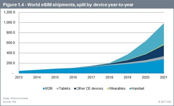 按照IHS Markit的最新研究報(bào)告, e-SIM將在明年開始進(jìn)入4G智能機(jī),不過局限于小范圍的測(cè)試。而三大智能機(jī)廠商三星、蘋果、華為下決心推廣則要再等到2019年。